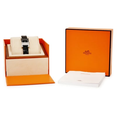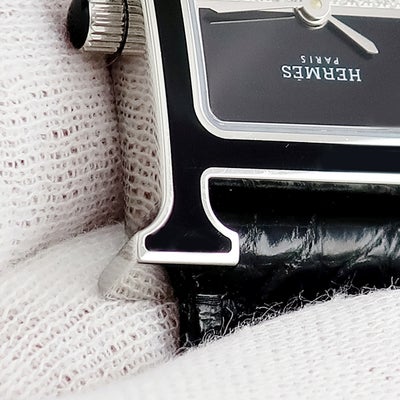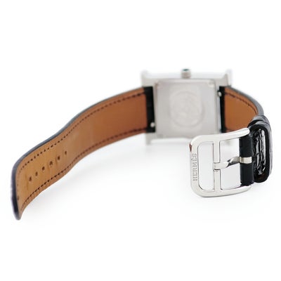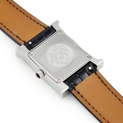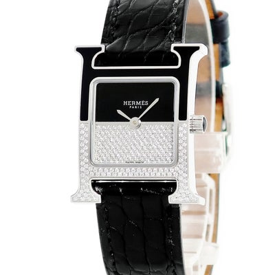 エルメス HERMES Hウォッチ ドゥブル ジュー PM HH1.233 純正ダイヤ H型 黒エナメル ツートーンダイヤル レディース 腕時計クオーツ ブラック 【中古】