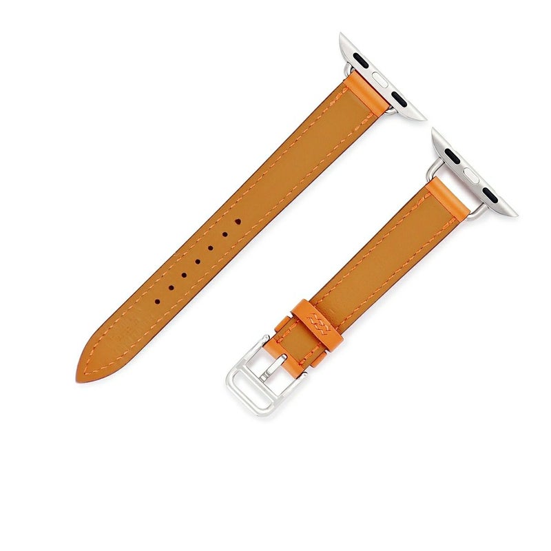 エルメス HERMES 腕時計パーツ 純正 アップルウォッチ 38 40 41 mm用 レザー ステンレススチール オレンジ 新品同様 レザー ベルト 32mm 橙 尾錠付き 【中古】