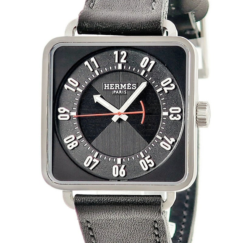 エルメス HERMES カレ アッシュ 38mm TI2.710 W045777WW00 ブラック 黒 アラビア スクエア メンズ 腕時計自動巻き ブラック 【中古】