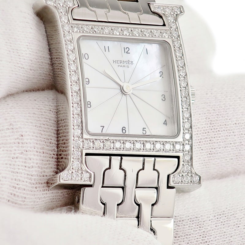 エルメス HERMES Hウォッチ PM HH1.230 純正ダイヤ ホワイト シェル H型ブレス スクエア レディース 腕時計クオーツ ホワイト 【中古】