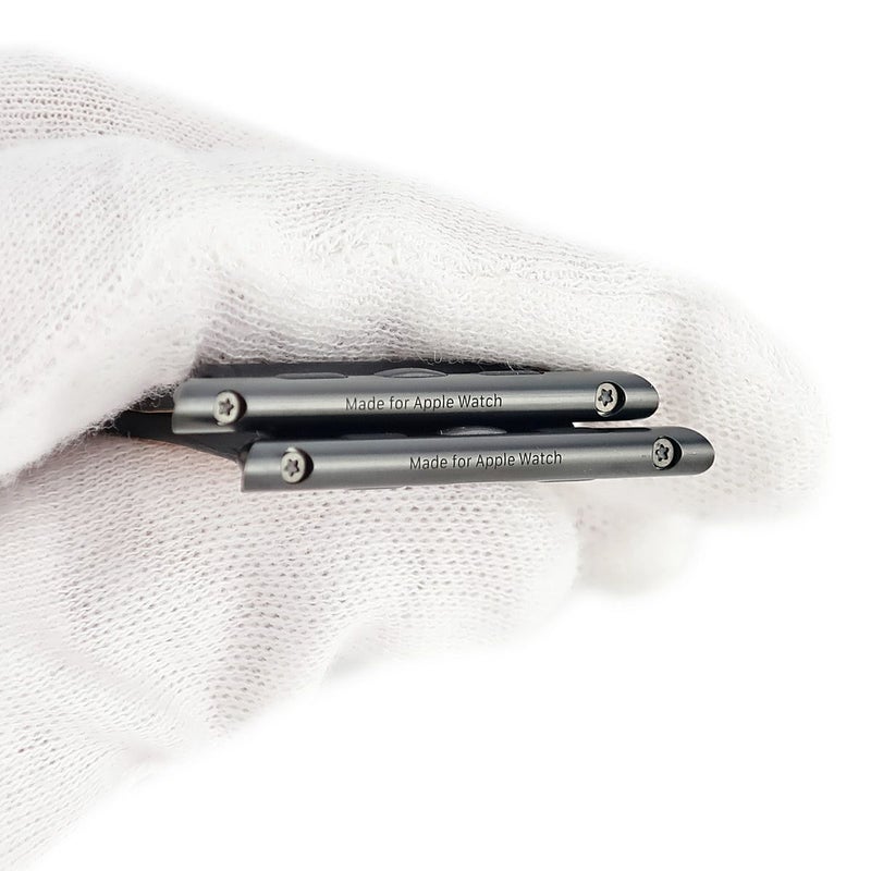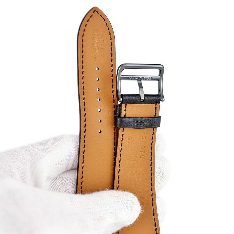 エルメス HERMES 腕時計パーツ 純正 アップルウォッチ 44 45 46 49mm用 レザー ステンレススチール ノワール 新品同様 レザー ベルト 35mm PVD 尾錠付き 【中古】