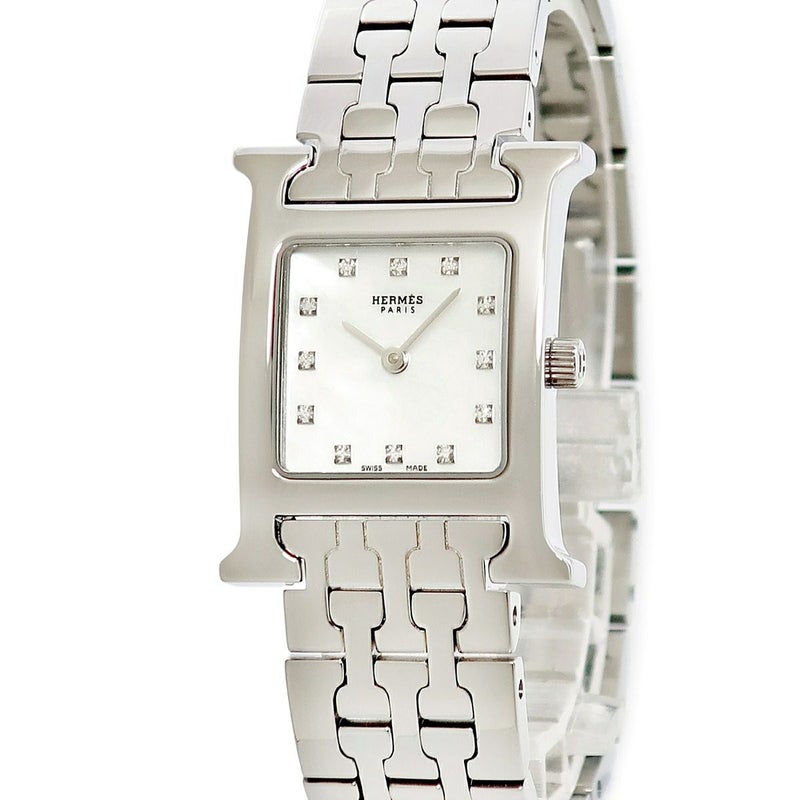 エルメス HERMES Hウォッチ HH1.210.283 純正ダイヤ シェル H型 スクエア 2針 シンプル SS クォーツ レディース 腕時計クオーツ ホワイト 【中古】