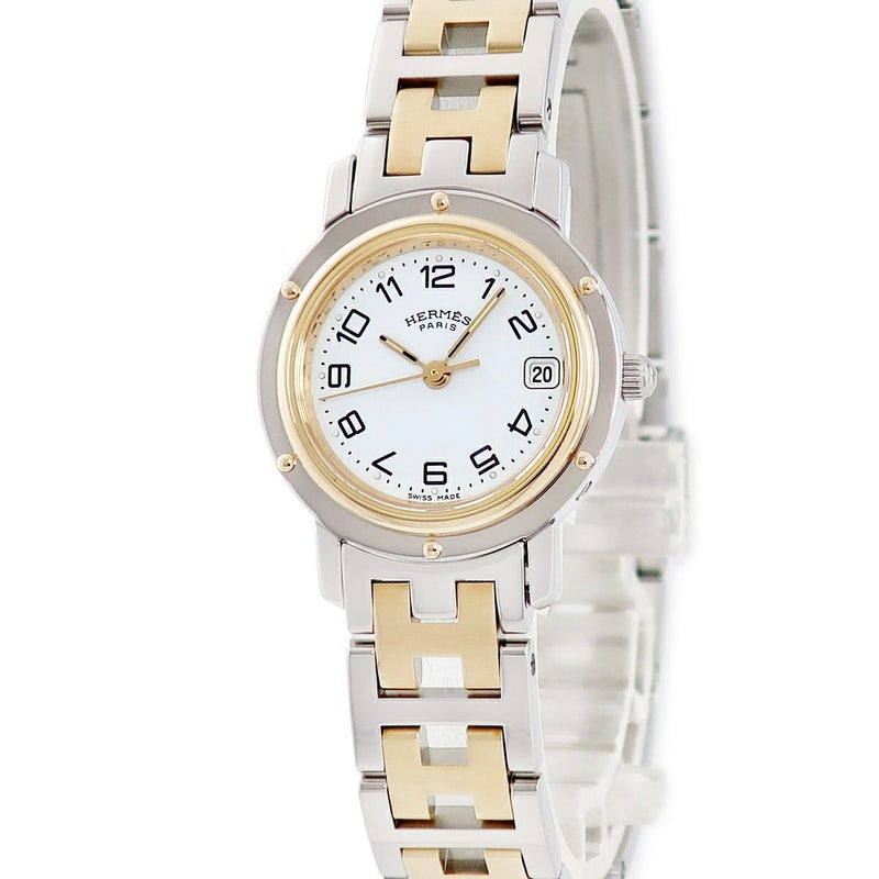 エルメス HERMES クリッパー CL4.220 GP×SS ホワイト Hマークブレス デイト アラビア レディース 腕時計クオーツ ホワイト 【中古】