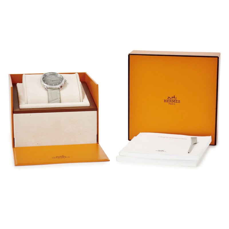 エルメス HERMES アルソー グランソレイユ AR5.330 純正ダイヤ グレー ギョウシェ メンズ 腕時計クオーツ グレー 【中古】