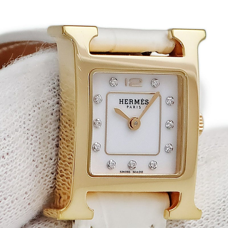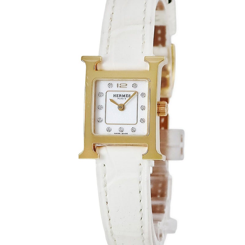 エルメス HERMES Hウォッチ ミニ TPM HH1.102.231 純正ダイヤ H型 スクエア ホワイト 白 レディース 腕時計クオーツ ホワイト 【中古】