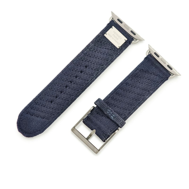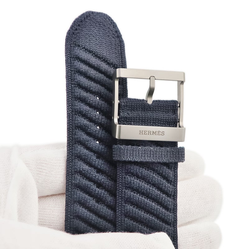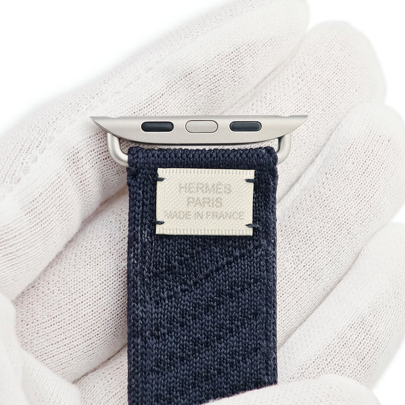 エルメス HERMES 腕時計パーツ 純正 アップルウォッチ 44 45 46 49mm用 ナイロン チタン ブルーニュイ アンメール ニットナイロン ベルト 35mm 尾錠付き 【中古】
