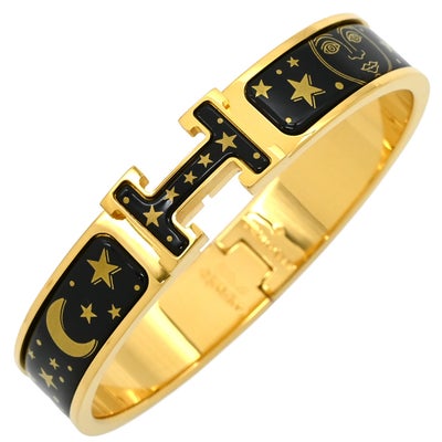 エルメス HERMES ブレスレット クリックH PM グロリア ソリ GP エナメル ブラック×ゴールド 黒 月 星 夜 Hブレス 【箱】 【中古】
