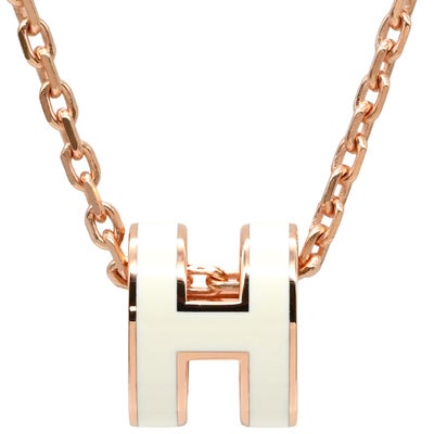 エルメス HERMES ネックレス ポップアッシュ ミニ ペンダント GP ラッカー ホワイト×ローズゴールド ピンクゴールド Hモチーフ 白 新品 未使用 【箱】 【中古】
