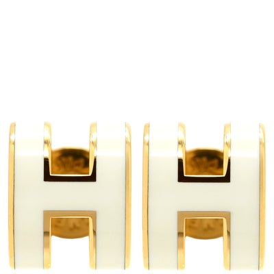 エルメス HERMES ピアス ポップアッシュ Hピアス ミニ GP エナメル ホワイト×ゴールド H型 新品 未使用 【箱】 【中古】