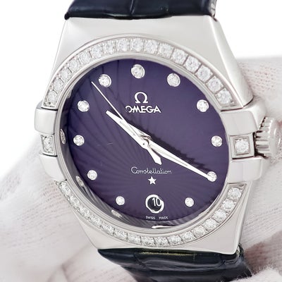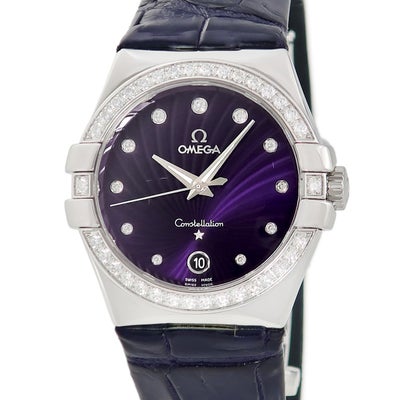 オメガ OMEGA コンステレーション 123.18.35.60.60.001 純正ダイヤ パープル デイト メンズ レディース 腕時計クオーツ パープル 【中古】
