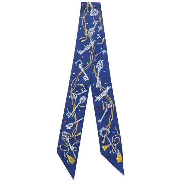 エルメス スカーフ ツイリー シルク ネイビー 【LES CLES A POIS/レ クレ ア ポア】 中古