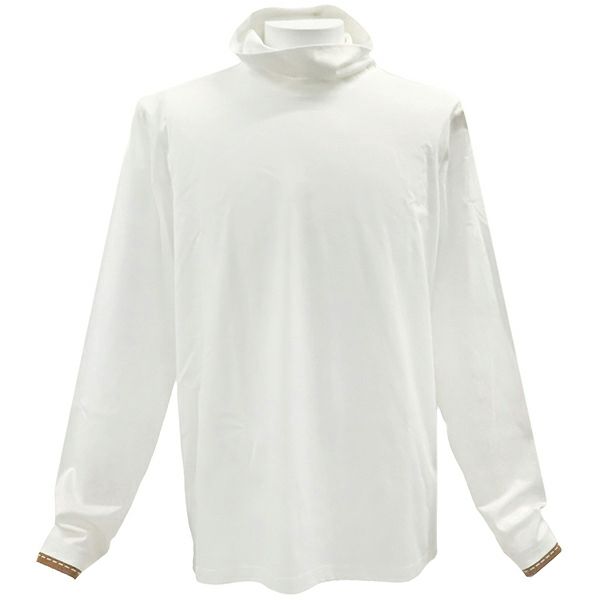 エルメス トップス タートルネック カットソー コットン ホワイト M 白 茶 長袖 ハイネック 中古