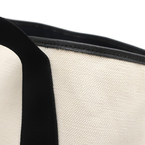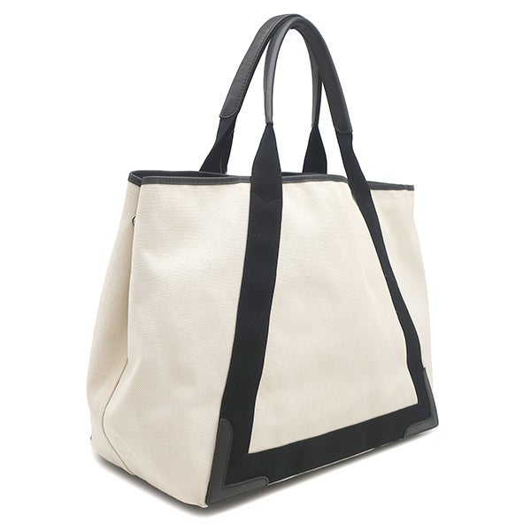 バレンシアガ BALENCIAGA トートバッグ Navy カバ M キャンバス レザー ナチュラル×ブラック シルバー金具 ネイビーカバス 黒 339936 1081 W 002123 【中古】
