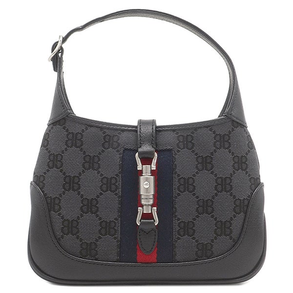 バレンシアガ BALENCIAGA 2WAYバッグ ザ ハッカー プロジェクト ジャッキー 1961 キャンバス レザー ブラック シルバー金具 黒 GUCCI グッチ コラボ 680132 【箱】 【中古】
