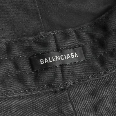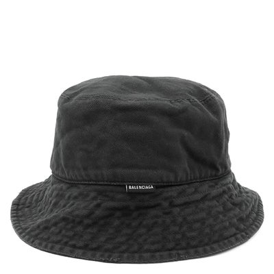 バレンシアガ BALENCIAGA 帽子 ロゴタグ バケットハット コットン ブラック S 黒 帽子 ヴィンテージ加工 【中古】