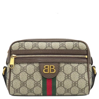 バレンシアガ BALENCIAGA ショルダーバッグ ザ ハッカー プロジェクト カメラバッグ キャンバス レザー ベージュ×ブラウン ヴィンテージ金具 GUCCI グッチ コラボ 680123 【保存袋】 【中古】