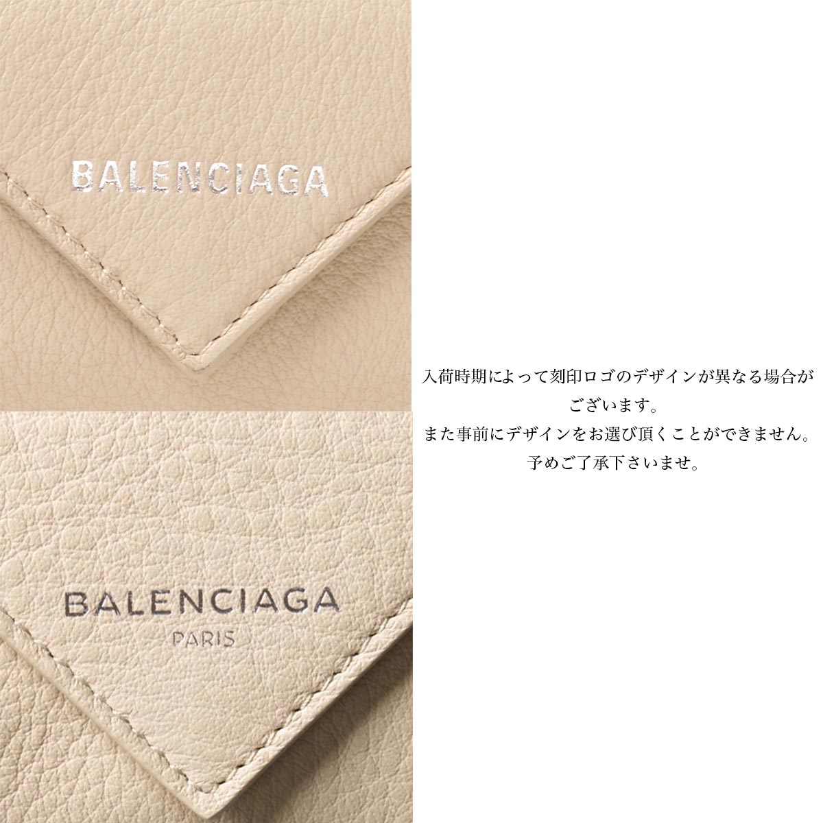 バレンシアガの【ペーパー ミニ PAPIER MINI】三つ折財布です。シックなベージュタピオカ【BEIGE TAPIOCA】グレインレザーを全体に使用した贅沢なデザイン。フロントのシルバーで型押しされたブランドロゴが見事に際立ち、美しいアクセントになっています。コンパクトサイズながらも、お札入れ、スナップボタン式コインポケット、カード入れが3枚、ポケットが1つと収納も充実。自分へのご褒美、大切な方へのプレゼント・ギフトなど、この機会にいかがでしょうか。