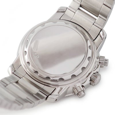 (細かなスレ、ガラスコーティングにスレキズ、インダイヤル部の針にくすみ、インデックスに変色、ベゼルに点キズ、裏蓋に線スレと僅かな点キズなどは御座いますが、大きなダメージは無く新品仕上げ済のお品物です。※インダイヤル/インデックスの夜光部分発光していません。)