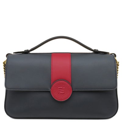 フェンディ FENDI ショルダーバッグ ダブルF チェーンショルダー レザー ネイビー×レッド ゴールド金具 紺 赤 ダブルフェイス 8BT297 【中古】