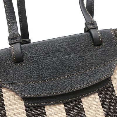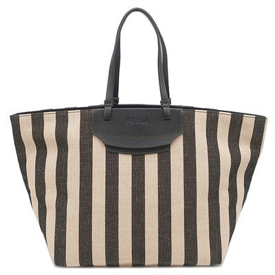 フルラ FURLA トートバッグ メラヴィリア キャンバス レザー ブラック×ベージュ ゴールド金具 ストライプ 黒 新品 未使用 WB00510 BX0635 【新品】