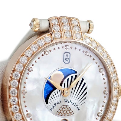 ハリーウィンストン Harry Winston プルミエール ムーンフェイズ PRNQMP36RR001 K18RG無垢 純正ダイヤ シェル レディース 腕時計クオーツ ホワイト 【中古】