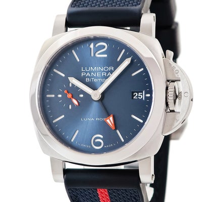 パネライ PANERAI ルミノール クアランタ ルナ ロッサ ビテンポ PAM01404 Z番 スモールセコンド デイト GMT メンズ 腕時計自動巻き ブルー 【中古】