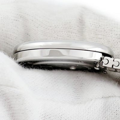 (細かなスレ、文字盤に僅かな粒汚れ、ケースサイド8時半方向に僅かな点キズ、裏蓋に細かな線スレなどは御座いますが、大きなダメージは無く新品仕上げ済の綺麗なお品物です。)