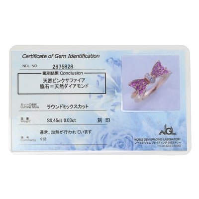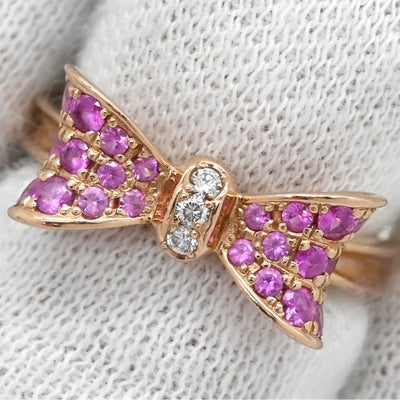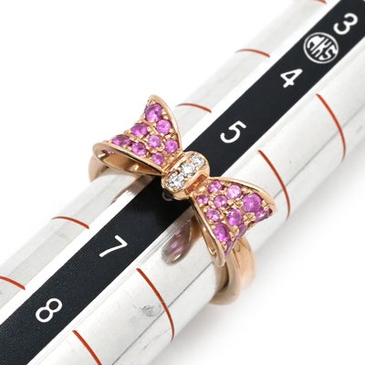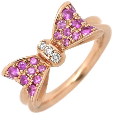 ポンテヴェキオ Ponte Vecchio リング 指輪 ピンクサファイア ダイヤ リボンモチーフ ピンク×ピンクゴールド Au750 18K 18金 6号 【中古】