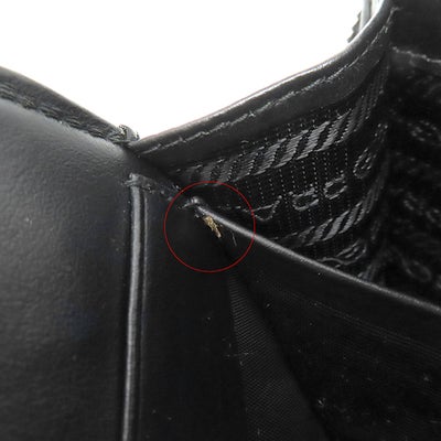 【外側】表面生地に僅かな擦れや薄汚れ、レザーに擦れや押し跡、コバに擦れ、ファスナー生地に毛羽立ち、金具に擦れや小傷、ショルダーにクセ【内側】レザーに擦れ、カードポケットに画像の様な汚れ【におい】特になし