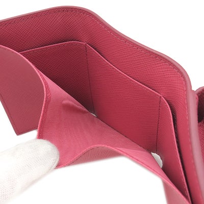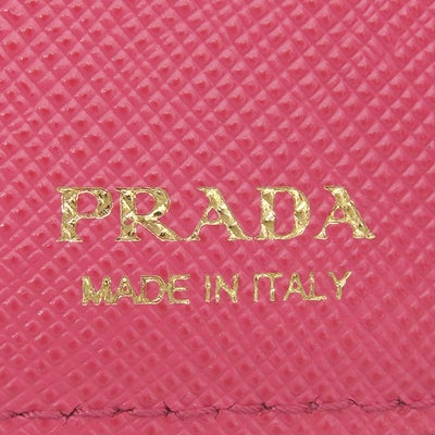 プラダ PRADA 三つ折り財布 メタルロゴ レザー ピンク ゴールド金具 コンパクトウォレット 1MH021 【箱】 【中古】