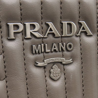 プラダ PRADA ショルダーバッグ ダイアグラム クロスバック レザー グレー シルバー金具 チェーンショルダー グレージュ 1BH083 【保存袋】 【中古】