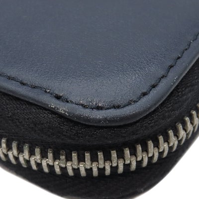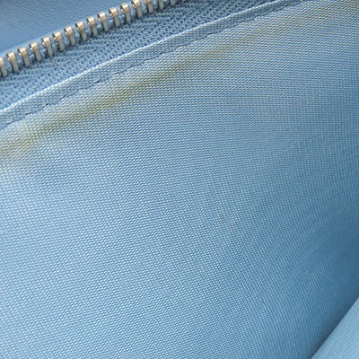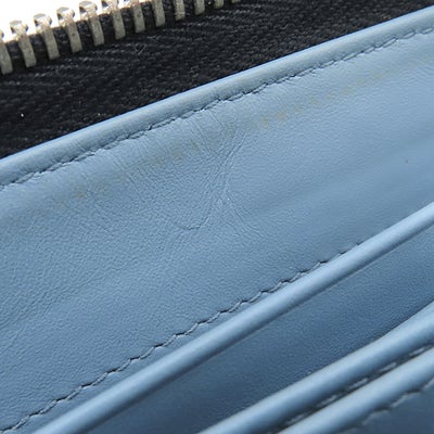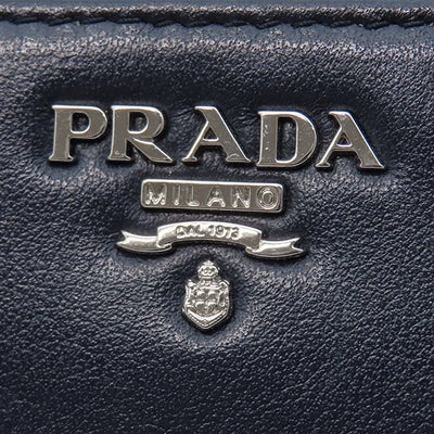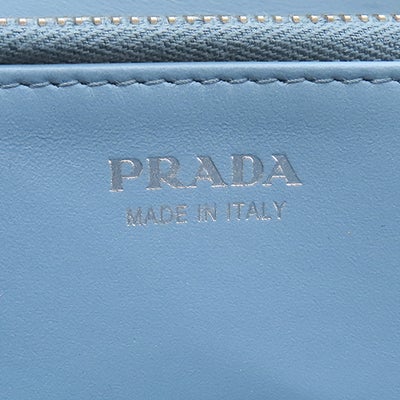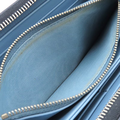 プラダ PRADA 長財布 ロゴ ラウンドファスナー レザー ネイビー シルバー金具 紺 水色 バイカラー 【中古】