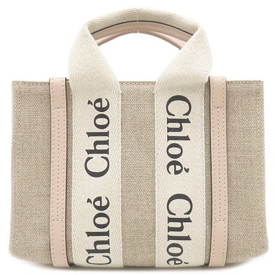 クロエ Chloe 2WAYバッグ リネン製 Woody ミニトートバッグ リネン リネンキャンバス シャイニーカーフスキン セメントピンク ハンドバッグ ショルダー CHC22AP237I266J5 【保存袋】 【中古】