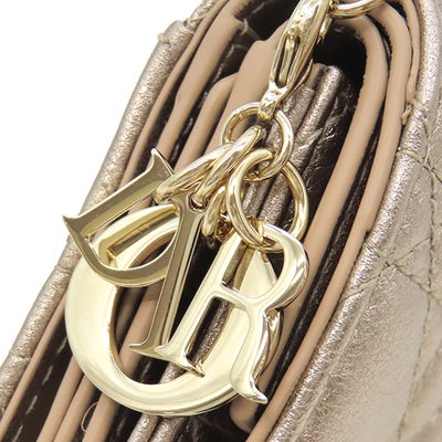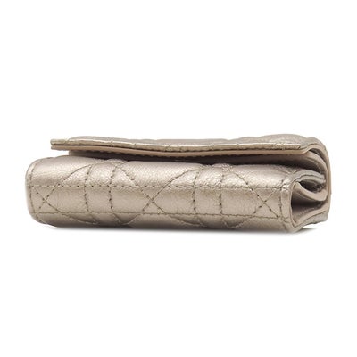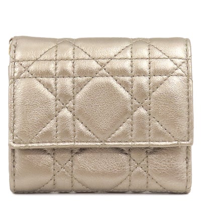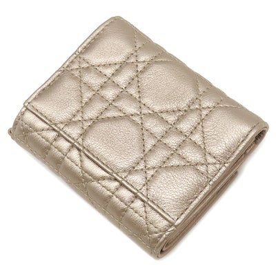 クリスチャン・ディオール Christian Dior 三つ折り財布 レディ ディオール ロータスウォレット カーフ ゴールド ゴールド金具 Lotus 小銭入れ チャーム付き 【箱】 【中古】
