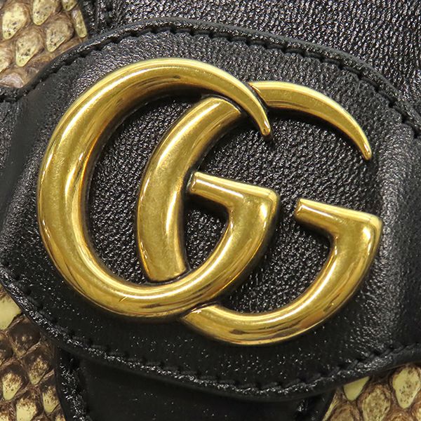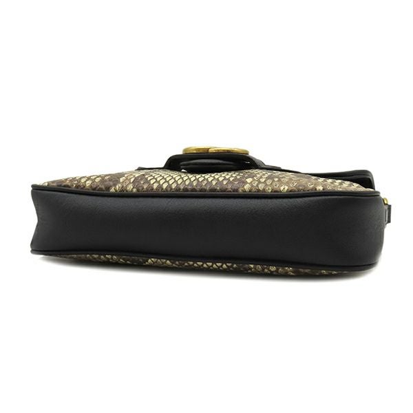 グッチ GUCCI ショルダーバッグ GGマーモント パイソン レザー ベージュ×ブラック ゴールド金具 黒 648934 【中古】