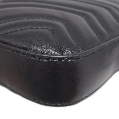 グッチ GUCCI ショルダーバッグ GGマーモント キルティング レザー ブラック ゴールド金具 ダブルG 523369 【中古】