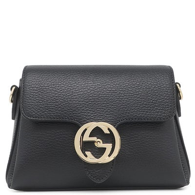 グッチ GUCCI ショルダーバッグ インターロッキングG チェーンショルダー レザー ブラック シャンパンゴールド金具 黒 607720 【中古】