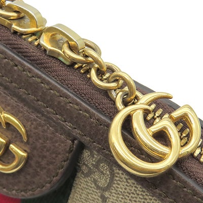 グッチ GUCCI ショルダーバッグ GGショルダーバッグ レザー GGスプリームキャンバス ベージュ×エボニー ゴールド金具 茶 緑 赤 シェリーライン 499621 【中古】