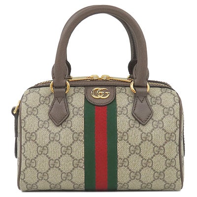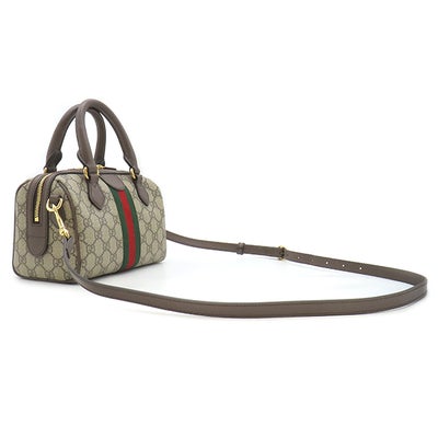 グッチ GUCCI 2WAYバッグ オフィディア スモール ボストンバッグ GGスプリームキャンバス レザー ベージュ×ダークブラウン ゴールド金具 茶 シェリー 517350 【保存袋】 【中古】