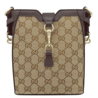 グッチ GUCCI ショルダーバッグ ミニ バケット GGキャンバス レザー ベージュ×ブラウン シャンパンゴールド金具 茶 782919 【保存袋】 【中古】