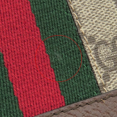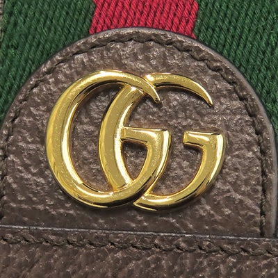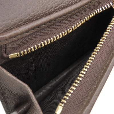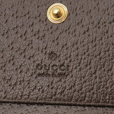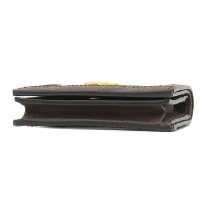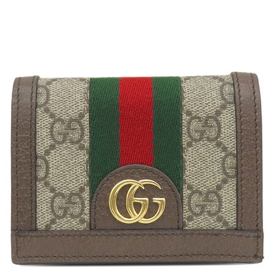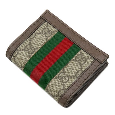 グッチ GUCCI 二つ折り財布 オフィディア GG カードケース GGスプリームキャンバス レザー ベージュ×エボニー ゴールド金具 ウェブ ストライプ 523155 【箱】 【中古】