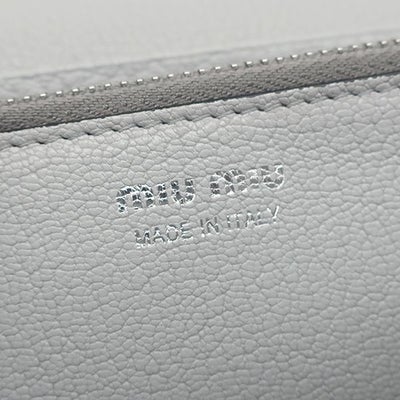 ミュウミュウ MIU MIU 長財布 二つ折り ロゴ レザー グレー シルバー金具 ロングウォレット カードケース付き 5MH109 【箱】 【中古】