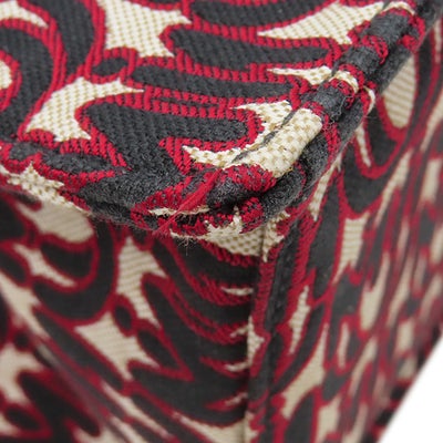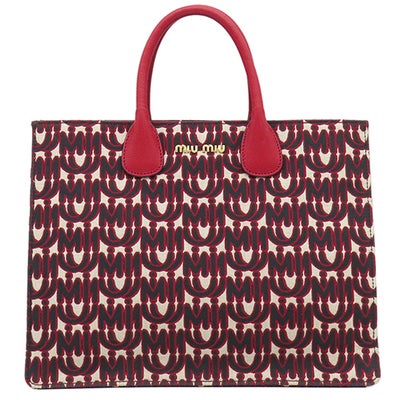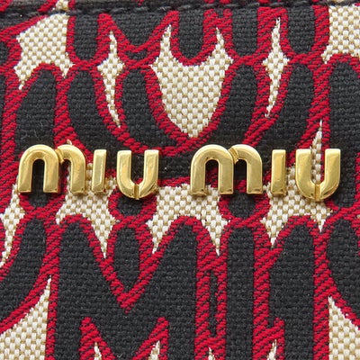 ミュウミュウ MIU MIU 2WAYバッグ 2WAY トート キャンバス レザー ジャガード レッド ゴールド金具 赤 黒 総柄 5BG156 【中古】