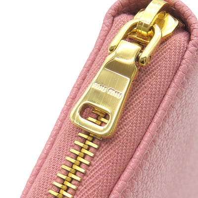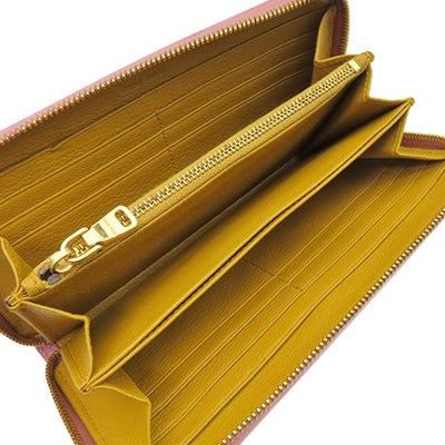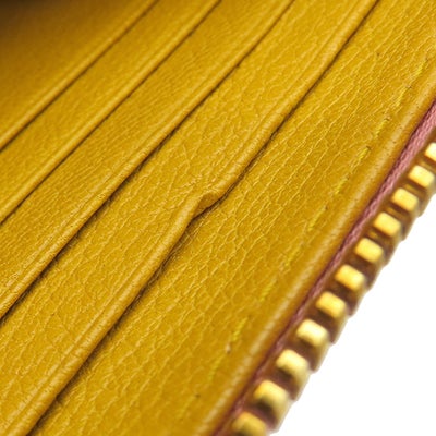 ミュウミュウ MIU MIU 長財布 リボン付き ラウンドファスナー ウォレット レザー ピンク×イエロー ゴールド金具 バイカラー 【中古】