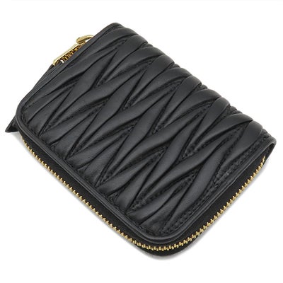 ミュウミュウ MIU MIU コインケース マテラッセ レザー ナッパレザー ブラック ゴールド金具 黒 コインパース 5MM268 【中古】
