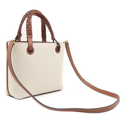 ロエベ LOEWE 2WAYバッグ アナグラム トート ミニ キャンバス レザー エクリュ×タン ゴールド金具 茶 ハンドバッグ ショルダー A717S74X01 【保存袋】 【中古】