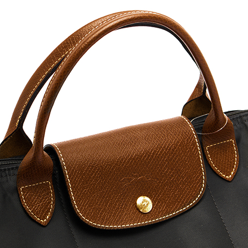 ロンシャンの【ル プリアージュ】ハンドバッグです。上品なブラック【BLACK】ナイロンボディに、ロンシャンの代表的シルエットとも言えるブラウンのカーフレザーを組みわせた定番のデザイン。レザーフラップ部分にはロンシャンのアイコンモチーフが型押しされ、より高級感をアップしてくれます。トップのファスナーを開けると、オープンポケットが1つ備わり小分け収納も可能。自分へのご褒美、大切な方へのプレゼントなど、この機会にいかがでしょうか。