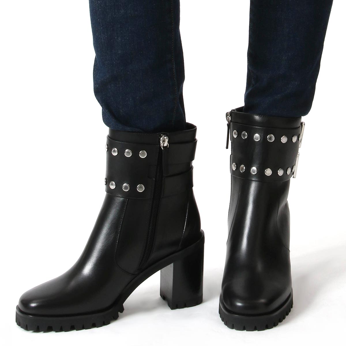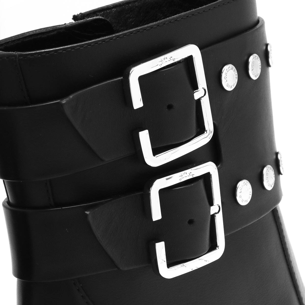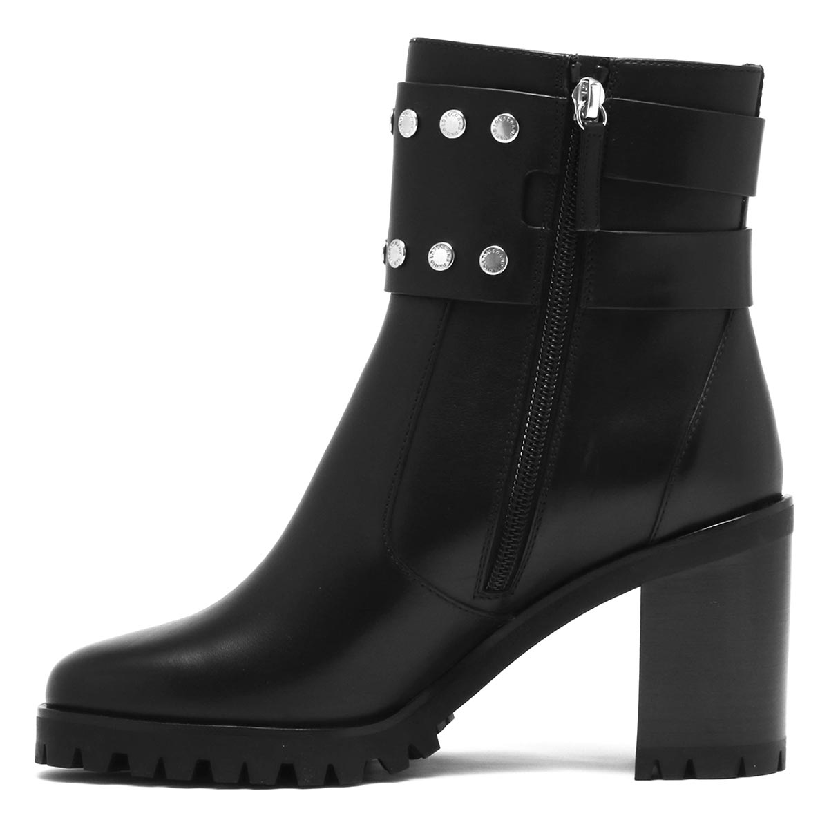 スタッズベルトがアクセントのロンシャンのブーツ。サイドファスナー付き。