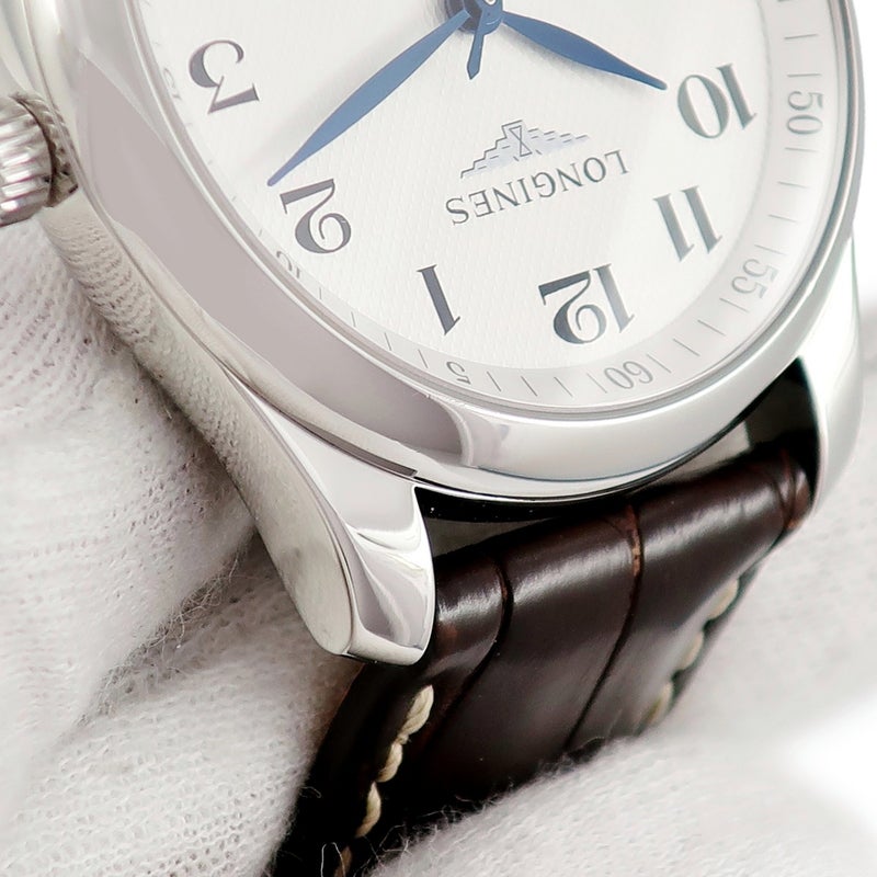 ロンジン LONGINES マスターコレクション ムーンフェイズ L2.909.4.78.3 OH済 デイト バーリーコーン 青針 メンズ 腕時計自動巻き シルバー 【中古】