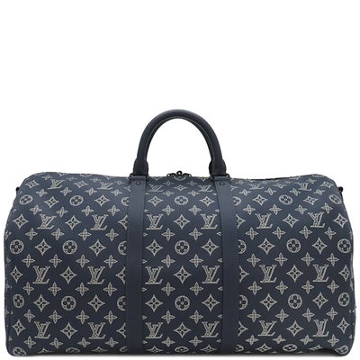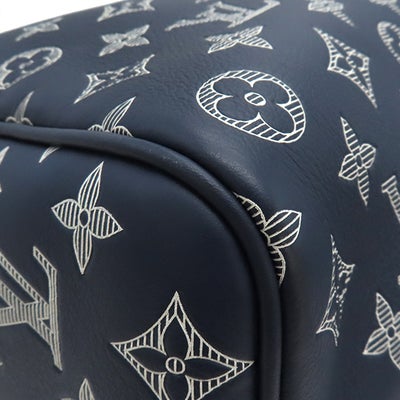 ルイヴィトン LOUIS VUITTON ボストンバッグ キーポル バンドリエール50 モノグラムシャドウレザー インクブルー×ホワイト マットブラック金具 ネイビー 青 白 鍵・パドロック欠品 M24953 RFID 【中古】